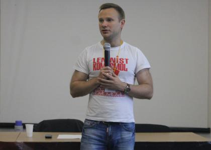После утренних активностей подошёл черёд лекции об очень актуальной на сегодня теме - атеизме и религии. Тем более в памяти уральцев всё ещё живы яркие воспоминания о противостоянии народа против строительства очередного храма в центре Екатеринбурга. С лекций о роли и влиянии РПЦ в современной России выступил первый секретарь Челябинского обкома ЛКСМ РФ Александр Шипков.