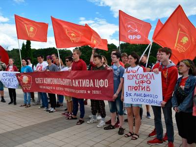 "Все уже воочию увидели во время проведения общероссийского голосования по поправкам в Конституцию, что такое многодневное голосование "на пеньках" и "в песочницах". Это окончательно превращает избирательный процесс в фарс! Поэтому акции протеста будут продолжены", - отмечают комсомольцы.