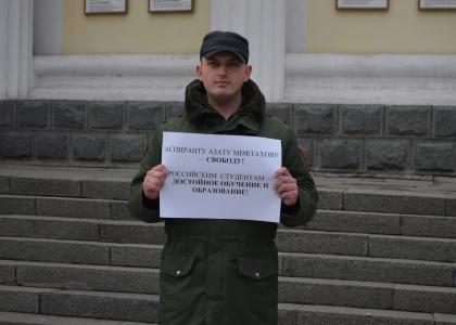 Не стали исключением и севастопольские комсомольцы. Так, 25 января первый секретарь горкома комсомола Александр Черемёнов вышел в одиночный пикет. В руках товарищ Черемёнов держал плакат с простыми, но ёмкими словами: "Аспиранту Азату Мифтахову — свободу! Российским студентам — достойное обучение и образование!".