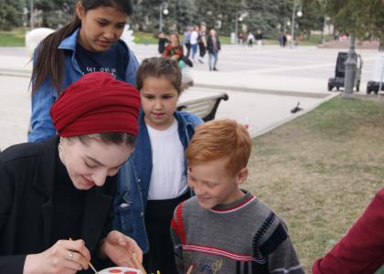 Для маленьких детей была организована площадка с аквагримом, которой руководила комсомолка Адэля Каргабаева. Ребятам рисовали советские знамёна на лице, красные звезды, ракеты, серпы и молоты. Также детям раздавались красные шары КПРФ.