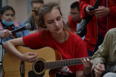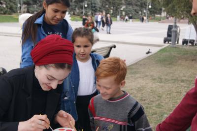 Для маленьких детей была организована площадка с аквагримом, которой руководила комсомолка Адэля Каргабаева. Ребятам рисовали советские знамёна на лице, красные звезды, ракеты, серпы и молоты. Также детям раздавались красные шары КПРФ.