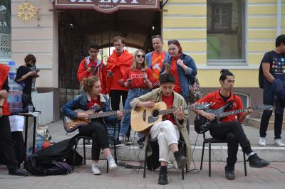 17 апреля мероприятия продолжались весь день. Началось всё с яркого шествия по центральным улицам с раздачей красных шаров КПРФ и листовок. Первыми точками, которые астраханские комсомольцы «захватили», стали площадка у ТЦ «Арбат» на ул. Кирова (в просторечии - Арбат), а также Братский сад напротив Кремля. Астраханские комсомольцы Мария Серовацкая, Тимур Байдалиев и Мейрхан Наурзгалиев исполнили для гостей и жителей города современные и советские композиции. Ребята играли на акустических и бас-гитарах, пели про Россию, Октябрьскую Революцию, Советский Союз, Ленина, а также песни Виктора Цоя и современных молодёжных групп и музыкантов. Композицию «И вновь продолжается бой» комсомольцы исполнили все вместе.