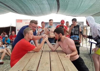 Разыгралась самая настоящая буря и во время второй смены. Порывы ветра достигали 25 метров в секунду. Волны взбунтовавшегося озера чуть не залили палатки, а готовые улететь транспаранты и тенты удерживали всем миром.