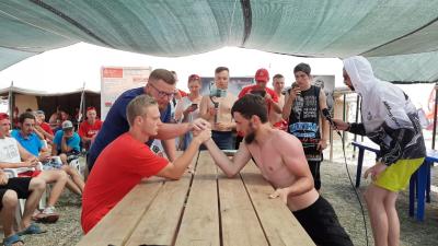 Разыгралась самая настоящая буря и во время второй смены. Порывы ветра достигали 25 метров в секунду. Волны взбунтовавшегося озера чуть не залили палатки, а готовые улететь транспаранты и тенты удерживали всем миром.
