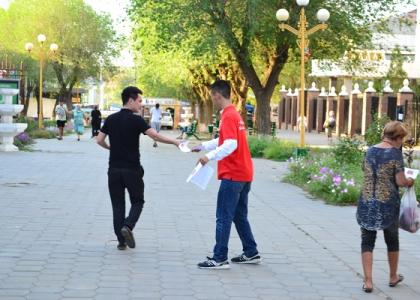 В честь 100-летия Комсомола Калмыкии комсомольцы республики организовали 23 августа в городе Элисте раздачу посвященных знаменательной дате листовок и буклетов с программой КПРФ "10 шагов к власти народа".