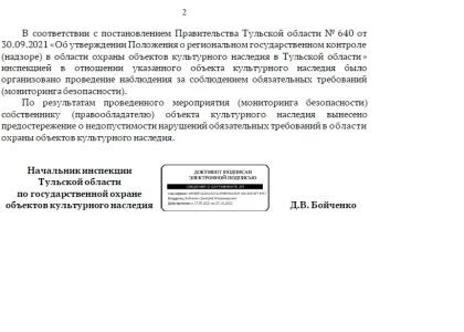 Здание было поставлено на государственную охрану в 1978 г. и в настоящее время принадлежит МО г. Тула, в нём расположены различные учреждения. К сожалению, в нарушении законодательства об охране памятников, предмет охраны данного ОКН до сих пор не утверждён. Информационной доски, описывающей историческое значение памятника, также нет. Очень надеемся, что в честь дня рождения КОМСОМОЛА, инспекция Тульской области по государственной охране объектов культурного наследия и администрация Тулы всё-таки обратит своё внимание на этот исторический памятник.