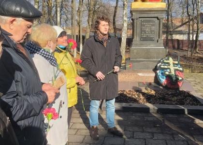 Цветы на могилу первого щёкинского комсомольца