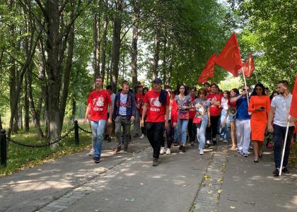 Второй день слета начался с общей зарядки, а после завтрака ребята отправились на автопробег по местам боевой славы Московской области. Во главе с первым секретарем ЦК ЛКСМ РФ Владимиром Исаковым и секретарем ЦК ЛКСМ РФ, комсоргом ЦК ЛКСМ РФ по ЦФО Анастасией Байбиковой молодые коммунисты проехали с красными флагами по улицам города Дмитров, прилегающих сел и деревень, а также посетили монумент Танк Т-34 и Монумент «Героям битвы под Москвой» на Перемиловской высоте.