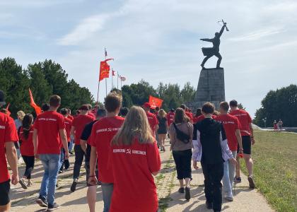 Ребят встретили партийцы города Дмитрова и Московской области, которые рассказали комсомольцам о месте кровопролитных боёв во время Великой Отечественной войны с 27 ноября по 5 декабря 1941 года. Это один из рубежей, на котором были остановлены немецкие войска, крайняя восточная точка их продвижения на фронтах севернее Москвы. В конце ноября 1941 года германские войска вплотную подошли с запада к Дмитрову, откуда они обстреливали город. Группа вражеских танков прорвалась к Дмитрову со стороны Яхромы, но огнём советских орудий и бронепоезда была разбита. Коммунисты и комсомольцы возложили цветы в память о защитниках нашего социалистического Отечества в годы Великой Отечественной войны.
