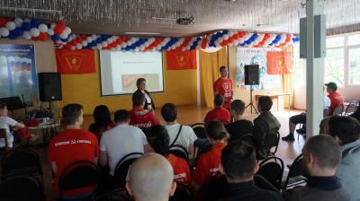Следующий, второй день комсомольского слета начался с тематической зарядки, посвященной Дню Ленинской пионерии.
