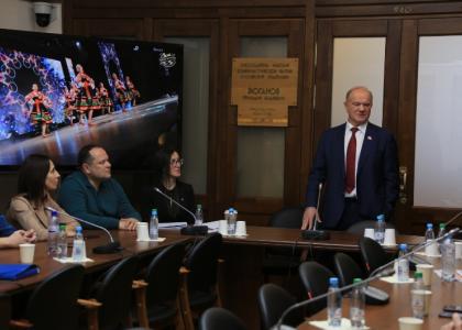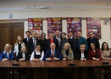 14 декабря в зале фракции КПРФ в Государственной Думе состоялась встреча лидера КПРФ Геннадия Зюганова с региональными кураторами Всероссийского конкурса детского и юношеского творчества «Земля талантов», которые представляют все федеральные округа. Во встрече приняли участие член Президиума ЦК КПРФ Мария Дробот и секретарь ЦК КПРФ, первый секретарь ЦК ЛКСМ РФ Владимир Исаков.
