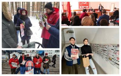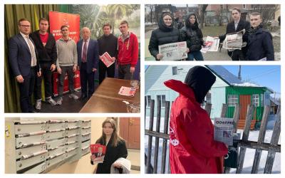 Комсомольский актив от Сахалина до Калининграда активно работает по распространению агитационных материалов. С поступлением первых тиражей листовок и газет комсомольцы вышли на улицы своих населенных пунктов, выезжали в самые отдаленные места, чтобы донести слово правды и убедить граждан поддержать нашего кандидата и партию на выборах. На счету комсомольцев десятки тысяч различных видов агитационных материалов, которые нашли свое место в руках избирателей. Стоит отметить креативные решения. Так, например, комсомольцами организовывались массовые пикеты с применением элементов молодежной культуры и различные флешмобы в поддержку нашего кандидата, акции «комсомольский автобус» с бесплатным проездом, ярким «красным» украшением и комсомольской музыкой, а в Международный женский день в целом ряде регионов поздравляли прекрасный пол, раздавая цветы и поздравительные открытки от имени Николая Харитонова. Аналогичная акция прошла с поздравлением мужчин в День Советской Армии и Военно-Морского флота.