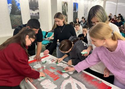 Особый восторг у ребят вызвали викторины и мастер-классы. Школьники, отвечая на десять вопросов за пять минут, демонстрировали свои знания истории, а студенты, за десять минут отвечая на двадцать вопросов, доказывали свои зрелость и осознанность. Победители викторин были награждены заслуженными грамотами. Кульминацией праздника патриотизма стал мастер-класс, на котором ребята своими руками с помощью трафаретов и баллончиков с краской создавали копии Знамени Победы.