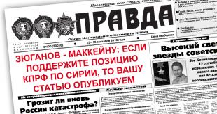 - С изумлением узнал, что сенатор Джон Маккейн ведет с "Правдой" переговоры о публикации своего ответа Путину. Как только услышал сразу запереживал: а в чем ему платить - в рублях или долларах. А потом подумал, может сенатор "ведет переговоры" с какой-то "Правдой-Оклахома-сити". В любом случае, в России "Правда" одна - это орган ЦК КПРФ. И ничего о намерениях сенатора-республиканца до нас не доходило, - отметил Б.О.Комоцкий