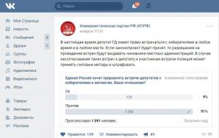 В центральной группе КПРФ в социальной сети ВКонтакте запущено голосование, в ходе которого любой желающий может высказать свое отношение к попыткам единороссов приравнять встречи депутатов с избирателями к митингам.