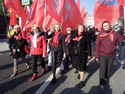 Делегация ВЖС-«Надежда России» во главе с председателем движение Ниной Останиной приняла самое активное участие в митинге-шествии памяти защитников Верховного Совета.