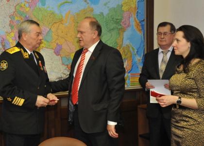 Награждение состоялось 22 февраля во фракции КПРФ в Государственной Думе. Г.А. Зюганов вручил военнослужащим и ветеранам Вооруженных Сил памятные медали ЦК КПРФ «70 лет битвы под Москвой».