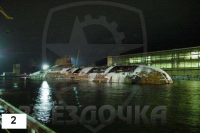 Фото 4. ТК-13 — подводная лодка класса ТРПКСН проекта 941 «Акула». Четвёртый корабль в серии. 3 июля 2008 года в док-камере на «Звёздочке» была начата утилизация.