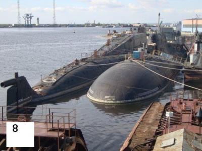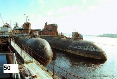 Фото 8. Северодвинск 2009 год – на утилизации РПКСН «Борисоглебск» проекта 667БДР слева и АПЛ «Барс» проекта 971.