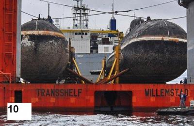 Фото 9. Транспортировка подлежащей утилизации АПЛ пр. 671 (по НАТО – Виктор) на борту судна-дока Тransshelf.
