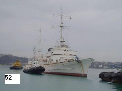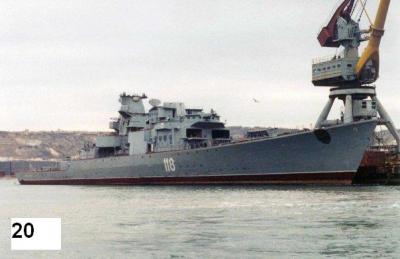Фото 20. ЧФ РФ. Ракетный крейсер пр. 58 «Адмирал Головко». В ноябре 2002 года на крейсере спущен российский военно-морской флаг. Утилизация в Инкермане (Украина).