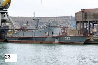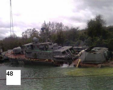 Фото 23. Корреспондент у одного офицера ЧФ (фамилию не помню) спрашивает: «в 2017 году, мол, истекает срок аренды Россией базы в Севастополе, что будем делать?» А тот и отвечает: «К тому времени ни один корабль ЧФ базу своим ходом покинуть не сможет». ЧФ РФ. Ракетный катер Р-44 (№ 966) на уничтожении 2008-09.