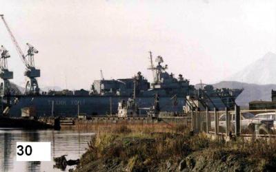 Фото 30. Пограничный сторожевой корабль «Кедров». В сухом доке. 28 февраля 2003 года корабль уведен с Камчатки для разделки в Китай.