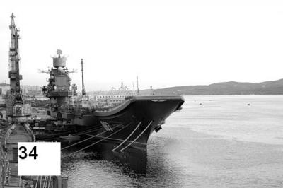 Фото 34. Единственный, один-единственный авианосец, оставшийся в боевом составе ВМФ — «Адмирал Кузнецов» пребывает в плачевном состоянии и с 2002-го года не выходит в море. Поговаривают, что он может разделить судьбу «Адмирала Горшкова» — пойти на продажу.
