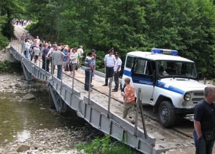После обеда на место блокады прибыли начальник милиции общественной безопасности Отдела МВД РФ по Хостинскому району г.Сочи и около 40 сотрудников полиции. Ситуация накалялась. Один из представителей компании-застройщика по фамилии Сураев вел себя крайне агрессивно. При этом на вопросы возмущенных жителей о том, почему незаконное строительство продолжается, никто из представителей компании ничего вразумительного ответить не мог, так же как не мог и предоставить жителям и представителям полиции разрешительную документацию. Один из полицейских заявил, что машина на мосту заминирована, и протестующих оттеснили от переправы к лесу, а машину откатили в сторону. При этом силовики давали понять жителям, что их собрание – "несанкционированный митинг", и намекали на то, что к ним могут быть применены соответствующие меры. Переговоры между жителями и представителями правоохранительных органов вели помощник депутата Госдумы Сергея Обухова Игорь Васильев и член Совета Экологической Вахты по Северному Кавказу Владимир Кимаев.