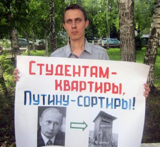 Из окна министерства наблюдал за пикетом зам. министра образования Гуляев. Участники обратили внимание, что он нервничал и кому-то постоянно дозванивался. Через 10 минут после этого к активисту ЛКСМ Павлу Барабанщикову подошли представитель администрации Ленинского района и сотрудник полиции. Им не понравился легальный плакат, на котором было написано: «Студентам – квартиры, Путину – сортиры!». «Это не по теме мероприятия… сверните его», – негодовали власть имущие.