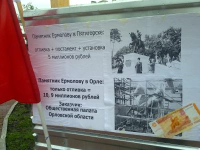 Такое решение было принято по итогам митинга оппозиционной общественности у места возведения памятника на площади Ермолова в центре г. Орла.