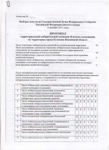 Заверенная копия протокола, которую получил наблюдатель от КПРФ, говорит о таких результатах: «Справедливая Россия» – 121, ЛДПР – 185, «Патриоты России» - 18, КПРФ – 166, «Яблоко» - 17, «Единая Россия» - 506, «Правое дело» - 9. Официальные результаты ГАС-выборы и сводной таблицы ТИКа: «Справедливая Россия» – 1 (минус 120), ЛДПР – 5 (минус 180), «Патриоты России» - 8 (минус 10), КПРФ – 166, «Яблоко» - 1 (минус 16), «Единая Россия» - 1297 (плюс 791), «Правое дело» - 2 (минус 7).