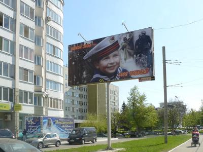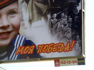 Накануне Дня Победы в Орле установили щиты, где маленький мальчик радовался: "Победа деда - моя победа!". Как раз над словом "победа" на коллаже была размещена фотография немецких солдат.