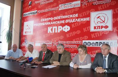 Сегодня же, в 12.00 в Северо-Осетинском Рескоме КПРФ состоялась пресс-конференция, в которой приняли участие: депутат Госдумы ФС РФ, секретарь ЦК КПРФ, первый секретарь Северо-Осетинского Рескома КПРФ Казбек Тайсаев, руководитель фракции КПРФ в Парламенте РСО-Алания, второй секретарь Северо-Осетинского Рескома КПРФ Елена Разумкина, командующий 58-ой армией в 2003-2006 г.г. Виктор Соболев, первый заместитель председателя Собрания представителей г. Владикавказ Чермен Зангиев, члены фракции коммунистов в Парламенте РСО-Алания, представители СМИ, теле-и радиокомпаний республики.