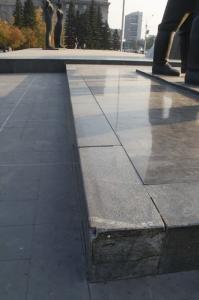 КПРФНск публикует послепраздничные фотографии памятника Ленину. Постамент архитектурной композиции испещрен сколами и трещинами, серьезнее всего пострадали угловые плиты, образовалась трещина у основания скульптурной композиции «Рабочий, солдат и крестьянин». Серьезно пострадал постамент самого памятника Ленину — отколот угол одной из гранитных плит, множество сколов в основании, с правой стороны отходит облицовка.