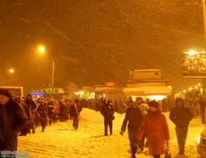 Для меня кошмар начался в 18.00, когда я встала в очередь на маршрутку. За два часа я не увидела ни одной из них. Простояв в очереди три часа и отморозив всё - что только можно, я догадалась вызвать такси. В 22.00, я – наивная, посчитала, что мои злоключения закончились. После поста ГАИ встали. Нас начали обходят один за другим десятки, сотни пешеходов. Таксист решается на героический поступок – поехать через Песочный! Проехав ровно половину посёлка, мы встаём в пробку. Простояв час, я понимаю, что плата за такси у меня с каждой минутой увеличивается, а вот расстояние до дома ни капли не уменьшается. На улице Советской Песочного я пополняю ряды пешеходов. До Сертолово – пять километров. Метель не прекращается. Я в обуви на каблуках.