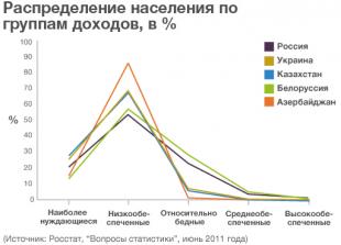 Проанализировав доходы жителей пяти крупнейших экономик СНГ - России, Украины, Казахстана, Белоруссии и Азербайджана - социологи этих стран пришли к выводу, что бедняки и малообеспеченные люди везде составляют подавляющее большинство. Доклад социологов опубликован в журнале Росстата "Вопросы статистики".