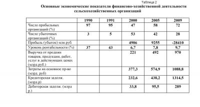 Основные экономические показатели финансово-хозяйственной деятельности сельскохозяйственных организаций