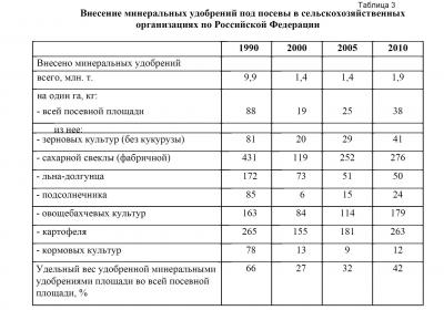 Внесение минеральных удобрений под посевы в сельскохозяйственных организациях по Российской Федерации