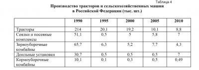 Двадцать лет назад Россия насчитывала 48 тысяч крупных коллективных хозяйств на селе. Сегодня их количество сократилось впятеро, и 30% из них стала убыточной. Страна вернулась к мелкотоварному производству и натуральному хозяйству с преобладанием ручного труда, каким оно было 100 лет назад. Сегодня более половины продуктов животноводства и 90% плодоовощной продукции производится в личных подворьях граждан. На смену машинам пришел труд с сохой и лопатой. По производительности труда страна в 8 раз отстала от уровня Евросоюза.