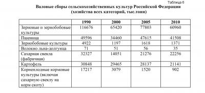 Валовые сборы сельскохозяйственных культур Российской Федерации