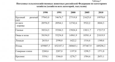 Поголовье сельскохозяйственных животных российской Федерации по категориям хозяйств (хозяйств всех категорий, тыс.голов)