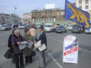 В то же время недалеко от агитационного пикета КПРФ активист Товарищества Инициативных Граждан России ТИГР Юрий Кучин проводил свой одиночный пикет против партии «жуликов и воров».