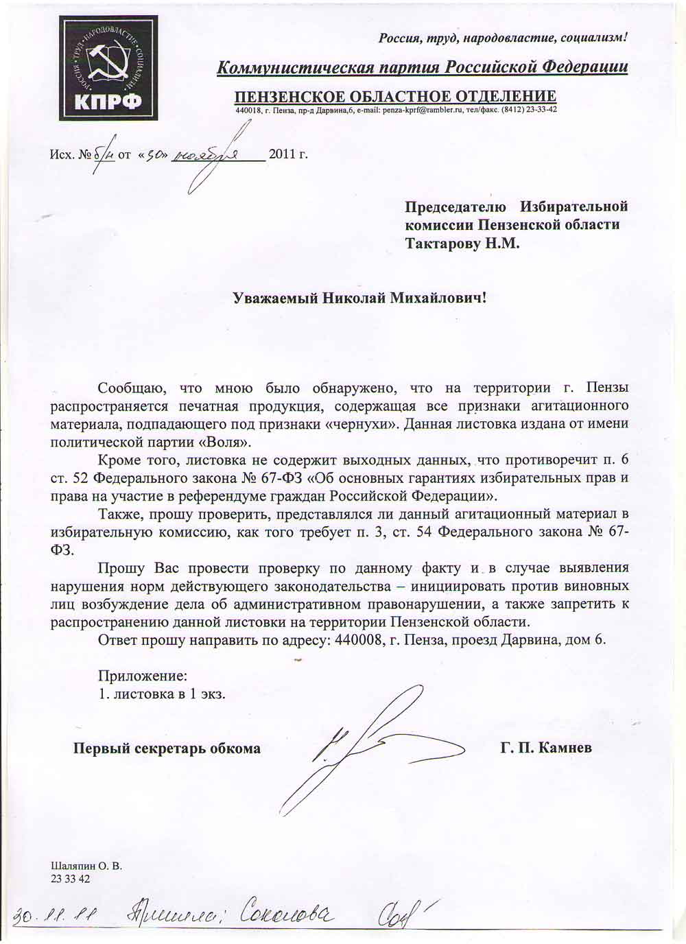 Мы обращаемся ко всем нашим избирателям и сторонникам. Товарищи! В последние дни перед выборами мы призываем вас помочь в деле поиска нечистых на руку негодяев и лжецов. Мы знаем, что люди, поддерживающие нас, наиболее честные, с активной гражданской позицией. Именно поэтому призываем сообщать немедленно о доступной вам информации об изготовителе и распространителях данной «чернухи». Наш контактный телефон: 8 (8412) 23-33-42, электронная почта penza-kprf@rambler.ru