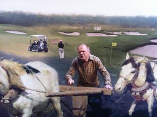 На рис.: Картина художника А.Буданова: "Зюганов перепахивает гольф-поле, национализированное у олигархов"