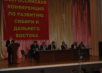 14 октября в Иркутске начала работу Всероссийская конференция по развитию Сибири и Дальнего Востока. Рано утром из Москвы на Форум прилетела представительная делегация депутатов Государственной Думы во главе с заместителем председателя ГД Иваном Ивановичем Мельниковым. Перед началом конференции ее участники вместе с иркутскими коммунистами провели торжественный митинг и возложили цветы к памятнику В.И.Ленину. От имени ЦК КПРФ И.И.Мельников наградил иркутских коммунистов у памятника Ильичу высшими наградами партии - орденом "Партийная доблесть" и почетными грамотами. Потом участники митинга и конференции под красными флагами прошли по улице Карла Маркса к КДЦ "Художественный", где и начала работу конференция.