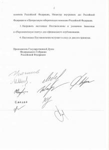 Государственная Дума Федерального Собрания Российской Федерации предлагает Генеральной прокуратуре Российской Федерации, Следственному комитету Российской Федерации и Министерству внутренних дел Российской Федерации в кратчайшие сроки провести тщательное и беспристрастное расследование всех обращений о нарушениях избирательного законодательства в ходе выборов депутатов Государственной Думы Федерального Собрания Российской Федерации шестого созыва 4 декабря 2011 года.