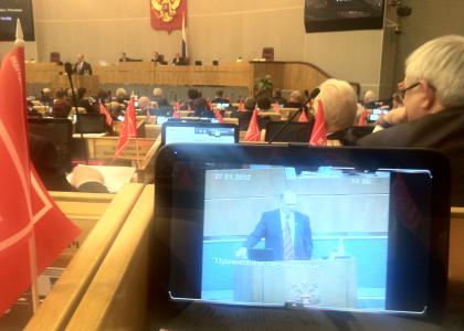 - В октябре 2009 года три фракции Государственной Думы в знак протеста против абсолютно мерзких местных выборов покинули этот зал и поставили ультиматум: провести встречу с президентом и заседание Госсовета по ремонту политической системы. У нас один из самых уважаемых депутатов – Николай Харитонов – шел кандидатом по Марий Эл. Его не пустили ни в один зал для проведения встреч с избирателями. А когда я приехал в Йошкар-Олу, на главную площадь города стянули тысячи милиционеров, ОМОН, бронетехнику, но мы все равно провели там свое мероприятие. На выборы мы туда направили 400 наблюдателей из других регионов, в городе получили 28-30%, но в деревне нас обобрали полностью – там наш результат оказался ниже в три раза. Поэтому хочу, чтобы мы сегодня серьезно обсудили эту ситуацию.