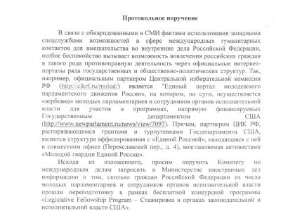 Депутаты Госдумы фракции КПРФ И.И. Мельников, С.Н. Решульский, В.Ф. Рашкин, С.П. Обухов, В.В. Черкесов, А.П. Тарнаев, А.Е. Локоть, Н.В. Коломейцев, О.Н. Алимова, В.И. Бессонов, Н.И. Сапожников, А.А. Пономарев, А.Д. Куликов, Н.В. Разворотнев внесли протокольное поручение, которое 27 января отклонило думское большинство.