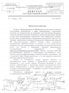 Депутаты Госдумы фракции КПРФ И.И. Мельников, С.Н. Решульский, В.Ф. Рашкин, С.П. Обухов, В.В. Черкесов, А.П. Тарнаев, А.Е. Локоть, Н.В. Коломейцев, О.Н. Алимова, В.И. Бессонов, Н.И. Сапожников, А.А. Пономарев, А.Д. Куликов, Н.В. Разворотнев внесли протокольное поручение, которое 27 января отклонило думское большинство.